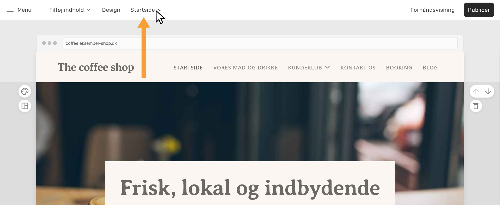 - Klik på menupunktet Startside: